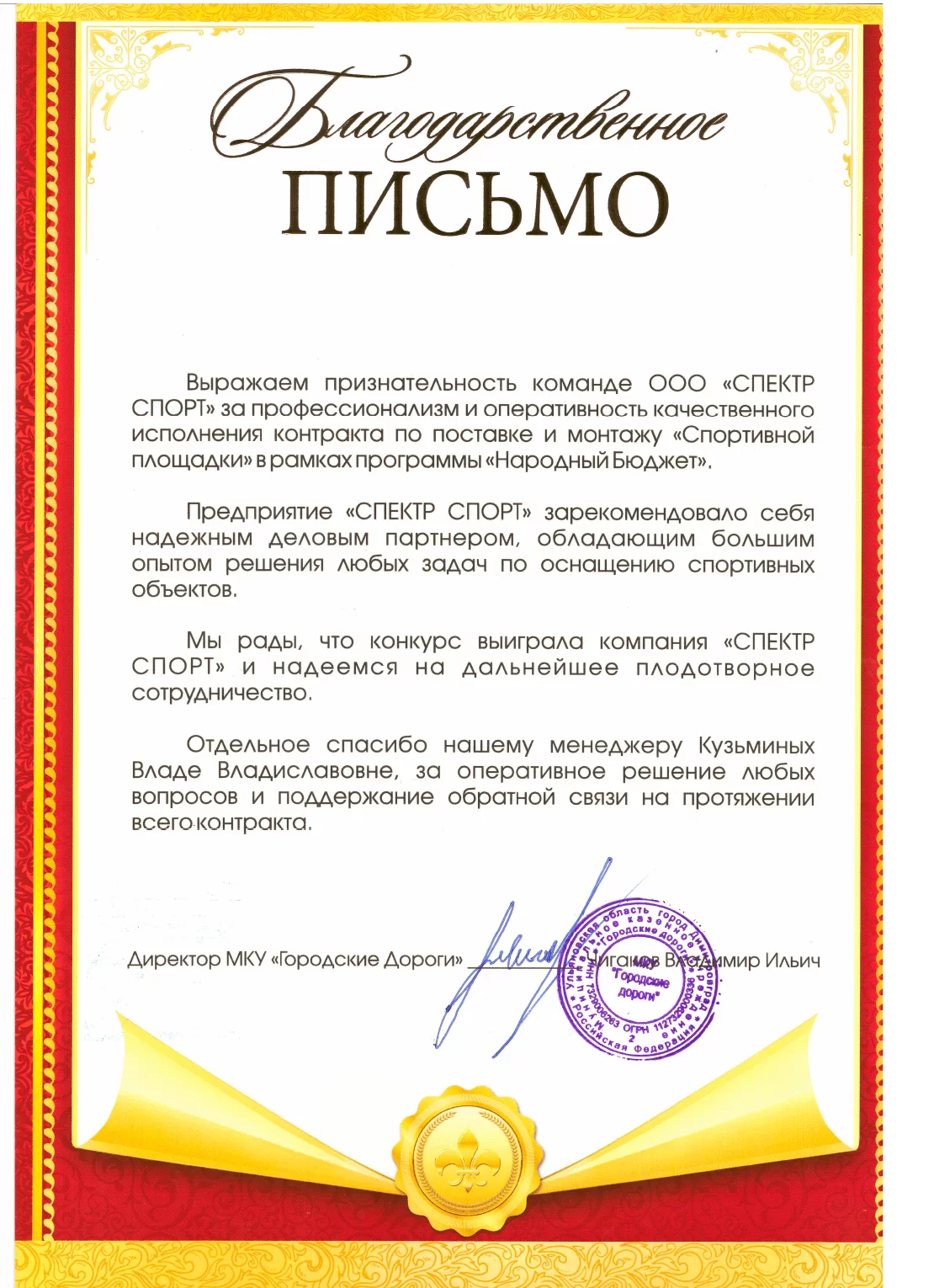 Благодарственное письмо